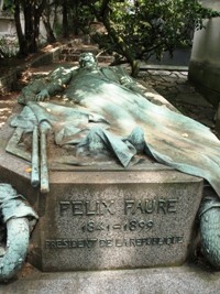– le fameux gisant de Félix Faure (cimetière du Père Lachaise, Paris)