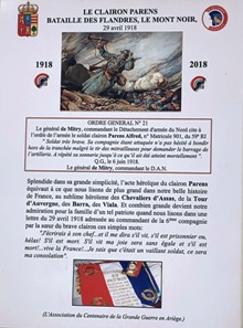 A l’entrée du cimetière, une plaque rend hommage depuis 2018 au clairon Parens, héros de la première guerre mondiale, appartenant à la 6e compagnie du 59e RI, l’un des régiments de l’Ariège. Le 29 avril 1918, dans les Flandres, l’officier qui commandait la tranchée française demanda un appui d’artillerie en envoyant des fusées de signalisation. Mais leur lueur se perdit dans la fumée des explosions et des gaz. C’est alors qu’intervint le clairon Alfred Parens : il sortit de la tranchée et, debout sur le parapet criblé de balles, sonna à pleins poumons « Commencez le feu », jusqu’à ce qu’une balle ennemie le couche à terre. Mais son appel fut entendu : les canons français répliquèrent et stoppèrent l’attaque allemande. Cet acte de bravoure eut un très grand retentissement. Un bâtiment de la caserne de Foix porte son nom.