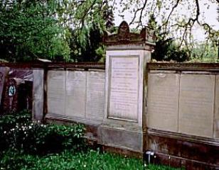 Le cimetière est entouré d’un mur jaune (de l’extérieur) contre lequel on peut encore voir parmi les plus vieux tombeaux du cimetière.