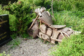 Peu d’audace architecturale. On notera néanmoins la présence sur une tombe d’une moto grandeur nature en...rotin !