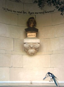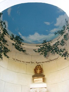 Il repose dans une chapelle peinte, ces peintures étant de facture moderne. Elle est ornée d’un buste et il a pour épitaphe, en français et en occitan, Si Paris me rend fier, Agen me rend heureux.