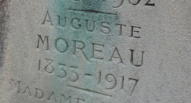 Auguste Moreau repose dans son tombeau d’origine, orné d’un médaillon de lui représentant sans doute son épouse. Dans ce même tombeau repose également son fils, Hyppolyte François MOREAU (1858-1932), qui fut également sculpteur et qui est régulièrement confondu avec son oncle Hippolyte, dont j’ignore la localisation de la tombe.