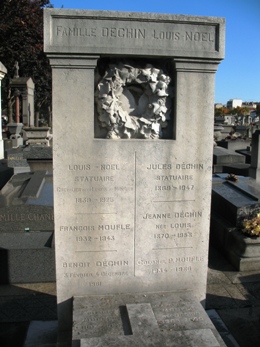 Originaire de Lille, Jules DÉCHIN (1869-1947) fut l’élève de Henri Chapu et Pierre Cavelier à l’École des Beaux-Arts de Paris puis lauréat du Prix de Rome en 1898. Il devint par la suite l’élève de Louis-Noël, dont il épousa la fille. Il se fit connaître par les très nombreux Monuments aux morts qu’il réalisa dans le Nord de la France, en particulier le soldat agonisant (ou Poilu mourant) qui fut énormément reproduit.