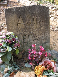 la tombe de l’écrivain et peintre François Augiéras (1925-1971), né aux Etats-Unis mais attaché au Périgord par son père, décédé deux mois avant sa naissance. Empreintes de mysticisme, ses errances le conduisirent du Sud-Ouest au Maghreb en passant par la Grèce. Son premier roman, le Vieillard et l’enfant, l’amena à rencontrer André Gide, enthousiasmé par la plume de ce jeune auteur. Marginal et solitaire, c’est en Dordogne qu’il vint finir ses jours, sur une terre qu’il jugeait chargée de spiritualité. Son œuvre littéraire, toujours autobiographique, peut difficilement être qualifiée de « grand public ».