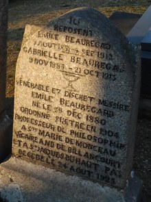 Signalons encore la tombe du prêtre Emile Beauregard (+1925), qui fut "professeur de philosophie à Ste-Marie de Monceau, vicaire à Billancourt et à Saint-Jacques du Haut-Pas".