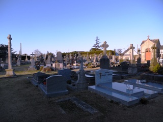 Petit tour rapide du cimetière de Saint-Briac-sur-Mer, qui ne donne pas du tout sur la mer, mais dont la partie la plus ancienne, de forme triangulaire, s’avance telle la proue d’un navire.