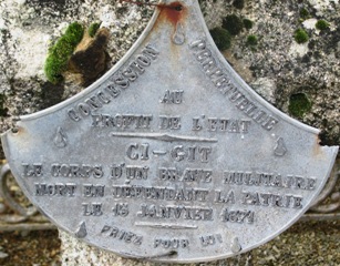 Dans un coin du cimetière, une croix de granit porte ces inscriptions : « Tombe militaire – Loi du 4 avril 1873 – Concession à perpétuité au profit de l’État – Ci-gît le corps d’un brave militaire mort en défendant sa patrie le 15 janvier 1971 – Priez pour lui ». Aucune identité n’est portée.