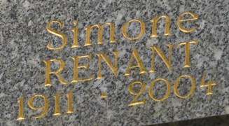 Dans ce cimetière repose l’actrice Simone RENANT (Georgette Buigny : 1911-2004). Issue du Conservatoire, elle débuta à la scène avec André Luguet ; au théâtre du Vieux-Colombier dans des rôles classiques, puis au cinéma, en 1932, avec La Folle Nuit, puis Escale en 1935. Sur le tournage des Perles de la couronne de Sacha Guitry, elle rencontra Christian-Jaque qu’elle épousa. L’un de ses meilleurs rôles fut celui d’une photographe dans Quai des Orfèvres en 1947. Elle fut également l’épouse du producteur Alexandre MNOUCHKINE (1908-1993) qui repose avec elle. Blonde et élégante, elle fut la parfaite incarnation de la séduisante coquette dans ses rôles.