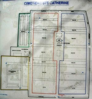 Le cimetière de Sainte-Catherine date du 1er juillet 1854. Avant, le cimetière se situait au nord de l’ancienne église Sainte-Catherine puis sur la place de l’Egalité. La ville élargissant son centre vital, il fallait alors trouver un terrain d’accueil. L’actuel cimetière se trouvait à la campagne à l’époque. Il y avait à l’époque trois carreaux bien différenciés : la grande entrée, au sud était destinée aux décédés de culte catholique. A l’Est, séparé par un fossé et une haie, un deuxième carreau dans lequel on entrait par une porte distincte, le carreau des « cultes dissidents ». Enfin, au nord, une troisième entrée et un troisième carreau, était réservé « aux asphyxiés et aux suppliciés ».