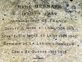 A Pernay repose René BESNARD (1879-1952). Avocat, député (1906-1919) puis sénateur (1920-1940) de l’Indre-et-Loire, il alterna fonction ministérielle et diplomatique, comme en atteste son parcours, symptomatique du personnel politique de la IIIe République :