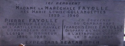 Tandis qu’il repose dans la crypte des Gouverneurs des Invalides, son épouse et leurs descendants ont leur tombeau au cimetières de Carmes de Clermont-Ferrand (63). Il fut le grand-père du Compagnon de la Libération Emile Fayolle (qui repose au cimetière militaire canadien d’Hautot-sur-Mer (76)), et l’arrière-grand-père d’Anne Pingeot, compagne de François Mitterrand, et mère de Mazarine Pingeot.