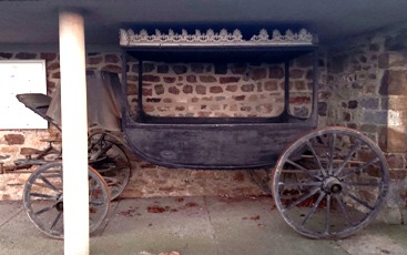 A l’entrée, on peut voir remisé l’ancien corbillard.
