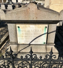 Y repose le général du Premier Empire Jean-Paul Adam SCHRAMM (1789-1884), qui après avoir fait la campagne d’Egypte participa aux campagnes napoléoniennes. Il resta sans emploi pendant la Restauration, mais reprit du service sous la monarchie de Juillet, réprimant une émeute à Lyon en 1834, puis participa à la conquête de l’Algérie où il remplit les fonctions de gouverneur général et le commandement en chef de l’armée d’Algérie, qu’il conserva jusqu’à l’arrivée du gouverneur général Bugeaud. Il fut fait comte et Pair de France. Député du Bas-Rhin de 1836 à 1839, il fut nommé en 1848 membre du Comité de défense nationale. Ministre de la Guerre de 1850 à 1851, il fut ensuite sénateur jusqu’à la fin de l’Empire.