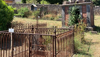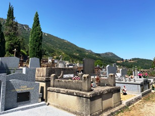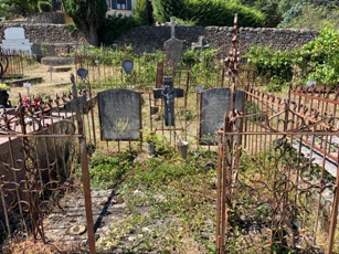 Au cimetière de Florac, s’étalant en pente sur le coteau, cohabitent anciennes et nouvelles tombes ; protestants et catholiques.