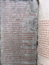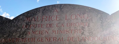 En face de la tombe de famille se trouve un imposant monument dédié à Maurice Long, triptyque sur lequel figure une liste innombrable d’institutions qui eurent un lien avec lui (du ministère des colonies aux rois et empereurs d’Indochine, des députés et sénateurs de la Drôme au gouverneur général de l’AOF, des écoles de Chabrillan au syndicat des planteurs de Cochinchine, de la ville de Saïgon et Gratin dauphinois (sic) du Tonkin !)