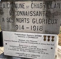 Le monument aux morts (et une plaque de la SFIO) au cœur du cimetière, rendent hommage au Compagnon de la Libération Gustave André, drômois qui fut instituteur à Chabrillan, et qui fut exécuté par les Allemands. Il ne repose cependant pas ici mais à la nécropole nationale de la Doua de Villeurbanne (69).
