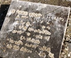 profession qui s’engagea dans la résistance et se dirigea vers le domaine des communications. En 1944, lors du débarquement, il fut chargé des communications entre les FFI et le Royaume Uni. Il avait pour adjoint Gustave André, évoqué précédemment. Il avait accolé le nom de naissance de son épouse à son nom hongrois Revesz lors de son mariage avec Mauricette Long, fille de Maurice Long. Il repose ici et non à Crest où il est indiqué sur le site de l’Ordre de la Libération.
