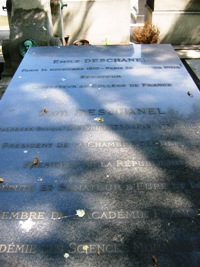 Fils du Républicain Emile Deschanel (avec lequel il est inhumé), filleul de Victor Hugo, cette homme politique français doit sa notoriété à un fait divers : sa chute de train en pyjama.