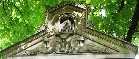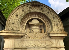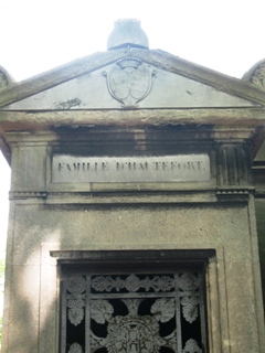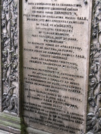 – La tombe de Marie-Sarah Pennington, sans doute la plus bavarde de tout le cimetière ! Non seulement on peut lire sur le coté deux longues épitaphes, l’une présentant ses ascendants, et l’autre les regrets éplorés de son fils ; mais une autre plaque à l’intérieur explique que la chapelle a été à trois reprises l’objet de la "convoitise des voleurs"...