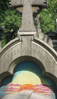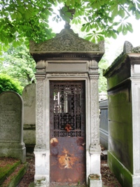 – L’artiste dramatique Jean Louis LACHAT (1846-1877). La stèle était ornée à l’origine d’un médaillon en bronze de Jean-Louis Lachat signé Jean Chapuy et d’un médaillon en bronze non signé de Marie Lachat. Les deux ont désormais disparus de la tombe.