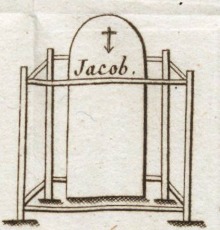 À la fin des années 1780, Georges Jacob réalisa des sièges inspirés de l’antiquité gréco-romaine, dessinés par le peintre Jacques-Louis David, pour son atelier, et que ce dernier fit figurer dans plusieurs de ses tableaux, notamment dans Les licteurs rapportent à Brutus les corps de ses fils. C’est sans doute l’amitié qui liait les deux artistes et la puissante protection de David qui permit à Jacob de traverser la période révolutionnaire sans être trop inquiété des rapports qu’il avait entretenus avec les princes de la maison royale et les différents membres de l’aristocratie. Il reposa dans cette division, en bordure d’allée, dans une sépulture reprise il y a fort longtemps mais dont une gravure ancienne nous permet de saisir l’aspect. La tombe se trouvait à gauche de celle, actuelle, de S.Borel. Cette tombe a fait l’objet d’une recherche par Marie Beleyme.