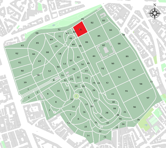 A l’instar du foncier de la capitale, les places convoitées se trouvent au centre du cimetière. Les divisions périphériques sont reléguées et attirent moins. C’est le cas de la 81ème division, dont la forme est à-peu-près celle d’un carré en pente la menant vers l’avenue circulaire. Dans cette division, la dernière "tombe nouvelle" a trente ans : pour quelques temps encore, les défunts ici inhumés goûtent d’une tranquillité qui ne durera pas, et ici comme ailleurs les vieilles tombes illisibles recouvertes de mousse non renouvelées finiront par laisser place à d’autres...