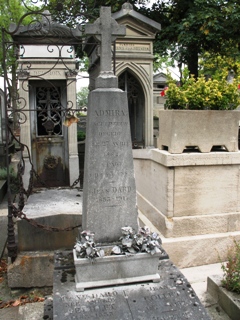 la danse et s’essaya à la comédie aux côtés de sa sœur Thérèse qui était figurante à l’Opéra de Paris. Elle joua dans plusieurs théâtres et on lui associa un jeune auteur dramatique, Victorien Sardou, pour qui elle avait une admiration sans bornes. Afin de pouvoir faire jouer les œuvres de son jeune protégé, Virginie Déjazet racheta le théâtre Folies Nouvelles auquel elle donna son nom en 1859. Durant soixante-dix ans de carrière, elle a tenu pas moins de deux-cents cinquante rôles et signé plus de deux-cents trente créations. Son fils, Eugène DÉJAZET (1819-1880) fut compositeur et musicien. Il composa une vingtaine d’opéras et d’opérettes, une grande partie de ses compositions étant interprétées par sa mère. Ils reposent tous les deux dans le même tombeau.