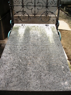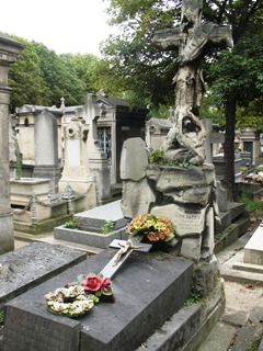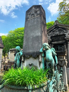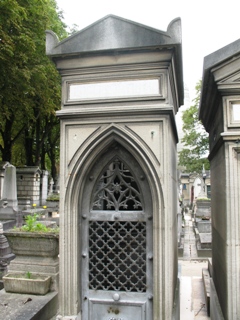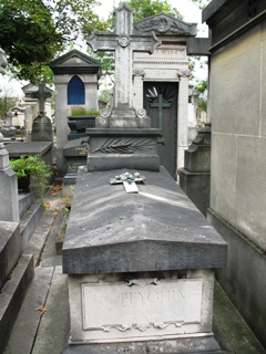 au Théâtre du Gymnase. La tombe est encadrée par deux putti en bronze non signés.