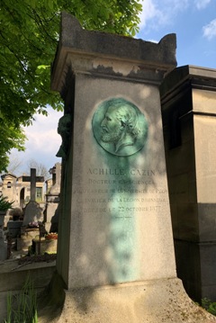 – Le physicien Achille CAZIN (1832-1877) repose avec l’homme de lettres Robert CAZIN (1831-1905) et Jeanne CAZIN (1839-1925), auteure de romans pour la jeunesse. Le médaillon d’Achille est signé Louis Edmond Cougny et les médaillons de Robert et Jeanne par Félix Benneteau.