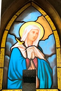 suites du COVID 19. Il repose sous une très belle fresque peinte.
