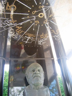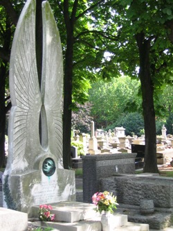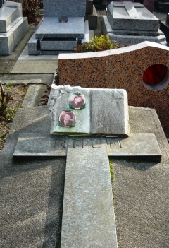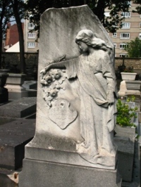 – La plus étonnante tombe du cimetière est celle de la famille Bournet-Popinot-Bouesnach-Renaud, signalée dans la 14ème division par un buste de Kourmskoff surmonté d’un ciel zodiacal.