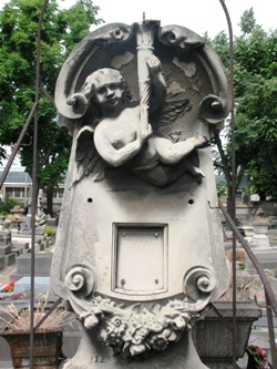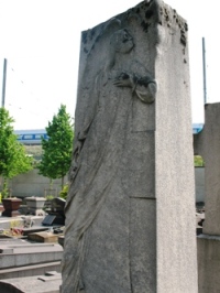 – quelques trop rares statues ou stèles sculptées. L’ensemble du cimetière ne possède que deux bustes : celui d’une femme âgée dans la 6ème division et celui d’un homme dans la chapelle Poinsot (9ème division).