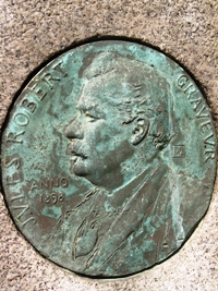 – le graveur Jules ROBERT (1843-1898), qui collabora à plusieurs journaux (l’Illustration, l’Histoire des Peintres). Il fut également l’auteur de plusieurs billets de banque. Un petit médaillon en bronze -le seul du cimetière- qui le représente orne sa tombe. Il est inhumé avec le graveur Auguste THEVENIN (1856-1921), son élève, à qui l’on doit plusieurs timbres. Le plan les indiquent dans la 7ème division.