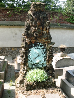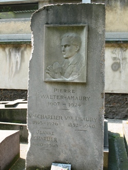 – Un médaillon minéral sur la tombe de Pierre Walter-Amaury, signé Léo Amaury.
