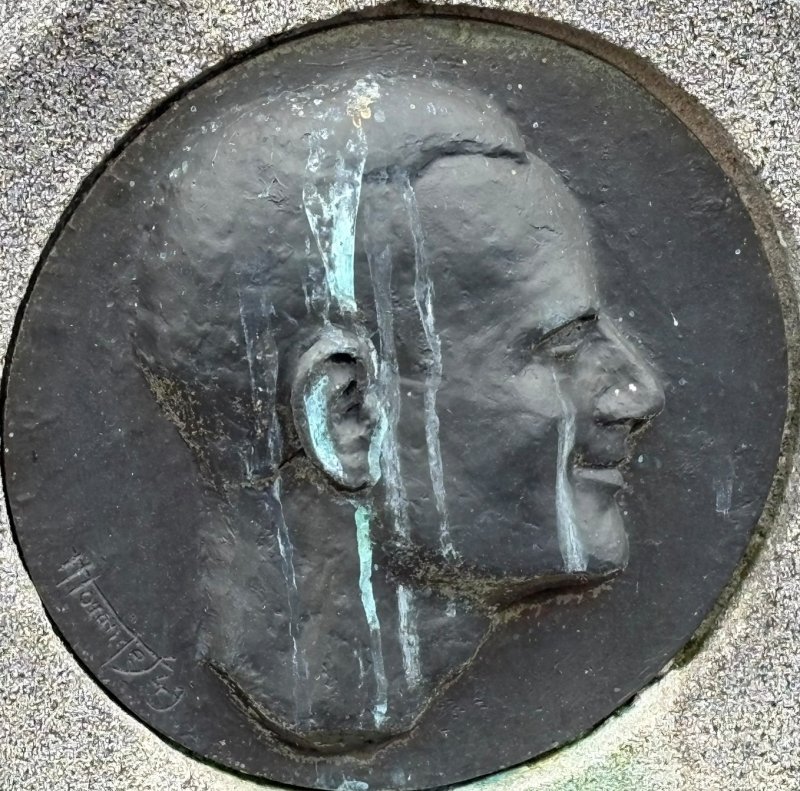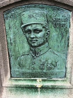 – Une plaque-médaillon en bronze de S.Kinsburger sur la tombe du jeune Maurice Lucas, tombé au front en 1917.