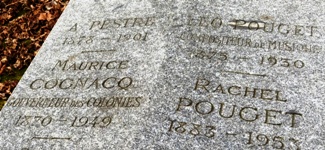 – Maurice COGNACQ (1870-1949), gouverneur de la Cochinchine de 1921 à 1926, il fut vivement attaqué par André Malraux pour ses méthodes autoritaires. Dans cette même tombe repose le compositeur Léo POUGET (1875-1930), à qui l’on doit des mélodies, des musiques d’opérette, mais également la bande musicale de La Passion de Jeanne d’Arc de Dreyer. La localisation de leur tombe sur le plan est totalement fausse.