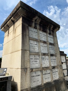 Une particularité qui étonne et interroge lorsque l’on entre au cimetière Saint-Roch : une grande tour « muette » bâtie en 1970 constitue un ossuaire central qui préserve ici 130 ossuaires : ceux des 130 familles de défunts (devenus anonymes après que le registre a disparu) rassemblés là après que les concessions ont été reprises en 1968-1969 pour faire de la place.