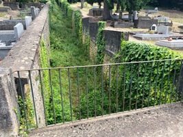 capharnaüm funéraire que constitue le lieu- , Mazamet connaît les problématiques de toutes les communes dans lesquelles cohabitaient catholiques et protestants, chaque communauté ayant son cimetière d’élection. Le site est non seulement anarchique mais également escarpé, à flanc de colline (bonjour les jambes pour le visiter exhaustivement !). Enfin, il a ses particularités : un "fossé" sépare les