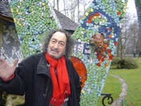 Peintre, graveur et architecte, déjà connu comme céramiste, Jean LINARD (1931-2010) remodela sa maison plusieurs fois, créant de nouvelles pièces, transformant et refaisant les toitures qu’il agrémenta de tuiles de couleur et de tuiles-personnages de sa fabrication, décorant les cheminées, le tour des portes et des fenêtres de mosaïques aux couleurs éclatantes. Il entreprit à partir de 1983 son œuvre majeure, la Cathédrale, construction monumentale, à la fois architecturale et sculpturale, inclassable et rangée sous le vocable d’environnement visionnaire. Construite en plein air dans un esprit résolument œcuménique les noms de Jésus, Mahomet, Bouddha, Bahá’u’lláh, Gandhi, Martin Luther King, Sœur Emmanuelle, Mère Teresa, Picassiette, Gaudí, Picasso et autres personnages que Jean Linard affectionnait particulièrement sont gravés sur la mosaïque. Un chemin de croix s’y termine avec une croix de résurrection aux couleurs éclatantes.