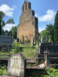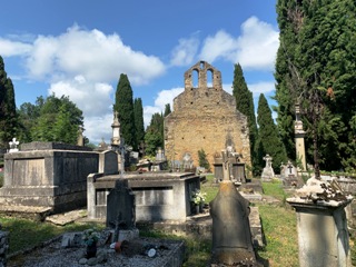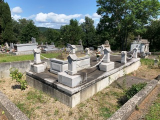 Le cimetière de Léran est un lieu charmant, éloigné du village. On devine la présence protestante de la région non seulement dans l’existence de cimetières familiaux privés aux alentours, mais également, dans celui de Léran, par un clivage entre les communautés catholiques et protestantes pas facilement délimitable.