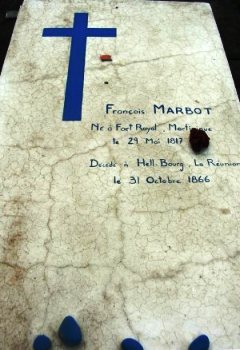 quid de la princesse RAZAFINANDRIAMANITRA (1882-1897), fille de la princesse Rasendranoro, une sœur de la reine Ranavalona III, reconnue comme l’héritière présomptive du trône de Madagascar mais qui ne régna jamais en raison de l’abolition, en 1897, de la monarchie malgache par la France. Elle mourut en exil à la Réunion, ne survivant que quelques jours à l’accouchement d’une fille, et fut inhumée dans ce cimetière, sous une pierre blanche selon la tradition ? Je suis preneur si quelqu’un a une explication...