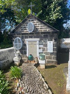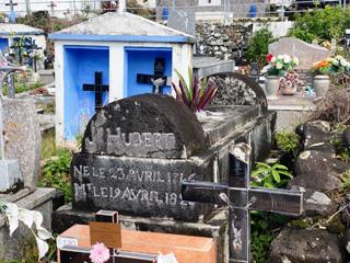 Si la partie gauche de ce cimetière est occupée par des tombeaux de très grande chapelles, la particularité de ce lieu est de présenter des centaines de tombes ou les croix habituelles ont été remplacées par des niches abritant crucifix, effigies ou fleurs. C’est le seul de l’île a présenter une telle concentration. On retrouve aussi, en faible quantité, des tombes comme en Guadeloupe, constituées de damiers de carrelage noir et blanc. Le cimetière musulman est dans la même enceinte mais séparée d’un mur.