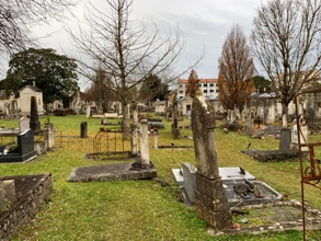 La cimetière se décompose en deux parties : à droite (partie nord), la partie la plus ancienne offre un désordre de tombes (la plus ancienne encore en place date de 1817) sur un sol enherbé. A gauche (partie sud), des sépultures un peu plus récentes offre un ordonnancement plus net.