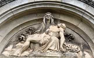 – On cherchera ailleurs l’originalité ornementale ; ici, peu de bronze : les sculptures sont en pierre, d’inspiration religieuse.