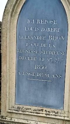 On notera également l’amusante épitaphe de Louis Robert BÉON (1759-1850). Moine bénédictin devenu curé assermenté, puis défroqué, il se maria et eut une descendance. Il fut Commissaire du Directoire exécutif en 1798.