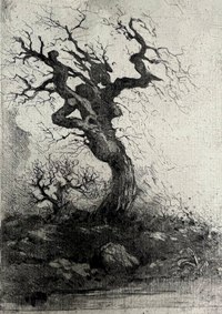 Constituée d’huiles sur panneaux et d’aquarelles, sa peinture est marquée par des supports pauvres, à la mesure de la situation sociale de l’artiste. Mais c’est surtout dans le domaine de la gravure qu’il excella avec des petits formats de paysages hallucinés, empreints de romantisme noir et de symbolisme. Il aima représenter les aspects austères de sa terre natale, des arbres tourmentés, des paysages sauvages, des villages abandonnés, des bêtes fantasmagoriques. Il publia également plusieurs ouvrages poétiques et un roman. Il mourut des suites d’un accident de la circulation, renversé par une automobile à la descente d’un tramway à Neuilly.