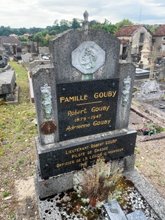 aviateur, il se rallia à la France libre en 1940 et suivit la formation de pilote de la Royal Air Force. Cumulant de nombreuses missions de combat, il abattit neuf appareils ennemis, faisant de lui un As de l’aviation. Il mourut dans le crash de son avion en Seine-et-Marne au cours d’un combat contre un convoi allemand. D’abord identifié par des habitants grâce à ses papiers, le corps fut ensuite emporté par les allemands qui l’enterrèrent au cimetière de Coulommiers, le considérant comme un pilote anglais inconnu. En octobre 1944, identifié par les Américains, il fut réinhumé au cimetière américain de Solers puis transféré à Villeneuve-Saint-Georges en 1945. En 1954, Robert Gouby fut définitivement inhumé dans la ville de son enfance.