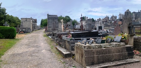 Le cimetière de Bourbonne-les-Bains à l’aspect minéral et fatigué de nombreux cimetières de province, où les vieux tombeaux conservés, parfois ornés mais souvent en mauvais état et illisibles, témoignent d’une autre époque où on investissait dans le funéraire.