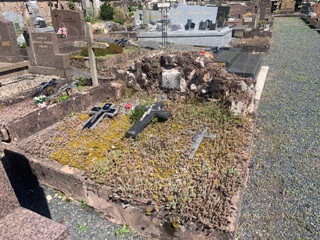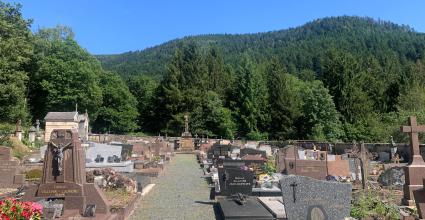 Insolite dans le cimetière, la sépulture du skieur bavarois Wilhelm Grünewald (+1915). Le monument funéraire est désormais un cénotaphe, son corps ayant été transféré à Bertrimoutier.