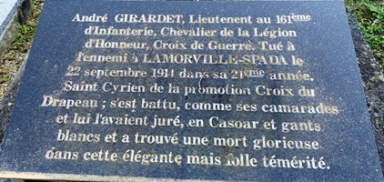 A l’entrée du cimetière on trouve la tombe de Raymond DELAÎTRE (1887-1935), architecte du gouvernement qui reçut en 1913 le Second Grand prix de Rome. Un long poème tient lieu d’épitaphe.